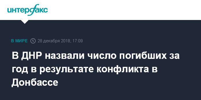 Москва. 28 декабря. INTERFAX.RU - В результате боевых действий в Донбассе за 2018 год погибли более 160 человек, еще более 300 получили ранения, сообщили в самопровозглашенной Донецкой народной республике.