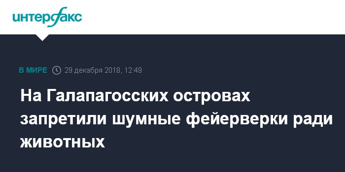 Москва. 29 декабря. INTERFAX.RU - На Галапагосских островах решили запретить ввоз, продажу и использование фейерверков в целях защиты от шума и стресса уникальной фауны архипелага, сообщает "Би-би-си".