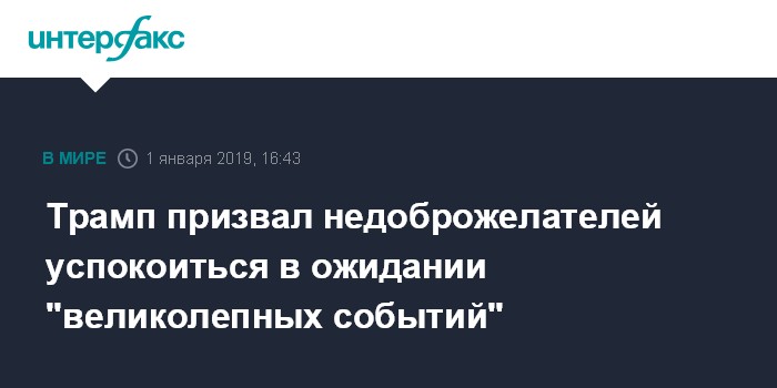 По мнению Трампа, "2019 будет потрясающим годом для тех, кто не страдает синдромом умопомешательства на почве нелюбви к Трампу. Просто успокойтесь и наслаждайтесь поездкой: нашу страну ожидают великолепные события".