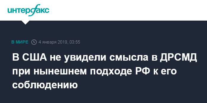 Ранее США неоднократно заявляли, что Россия не соблюдает ДРСМД. Россия эти обвинения отвергала. В НАТО заявляли, что опасения альянса связаны с характеристиками крылатой ракеты наземного базирования 9М729 для комплекса "Искандер". Москва настаивала, что новая российская ракета 9М729 развертывается в полном соответствии с международными обязательствами РФ по ДРСМД.