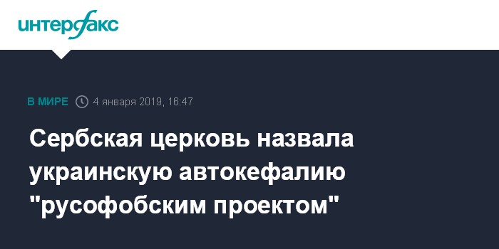 Москва. 4 января. INTERFAX.RU - Сербская православная церковь (СПЦ) расценила автокефалию Украины как проект одержимых националистов.