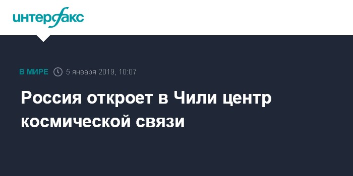 Москва. 5 января. INTERFAX.RU - Россия планирует открыть в Чили центр дальней космической связи (ЦДКС), сообщает Особое конструкторское бюро Московского энергетического института (ОКБ МЭИ).