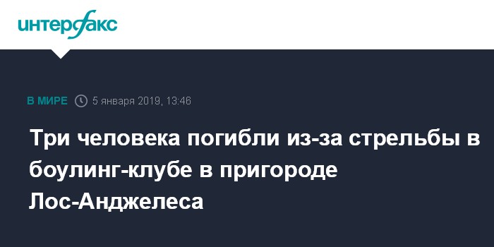 Москва. 5 января. INTERFAX.RU - Не менее трех человек стали жертвами стрельбы, которая произошла в боулинг-клубе американского города Торранс вблизи Лос-Анджелеса, сообщает в субботу агентство Associated Press.