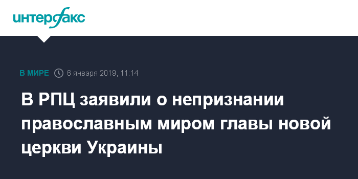 В РПЦ заявили о непризнании православным миром главы новой церкви Украины