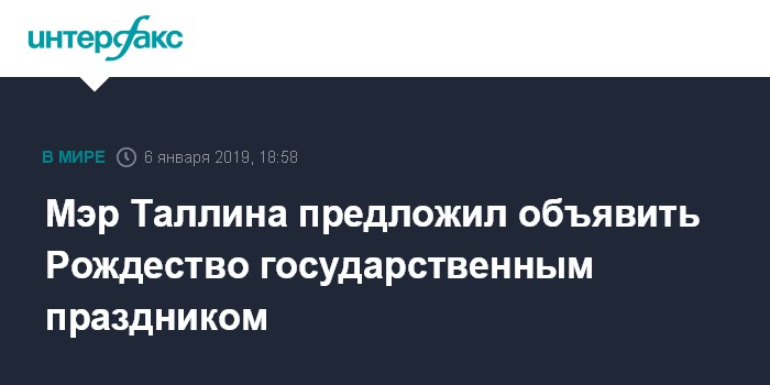 Москва. 6 января. INTERFAX.RU - Мэр Таллинна Таави Аас (Taavi Aas) предложил отмечать православное Рождество как государственный праздник.