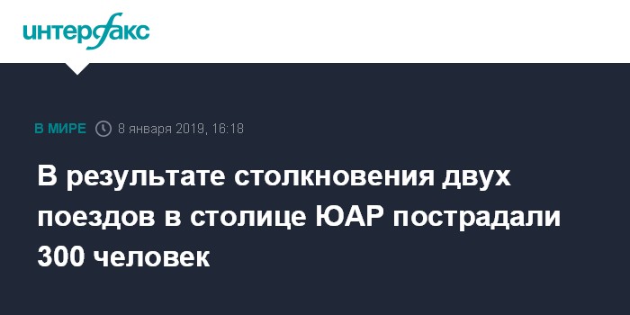 В результате столкновения двух поездов в столице ЮАР пострадали 300 человек