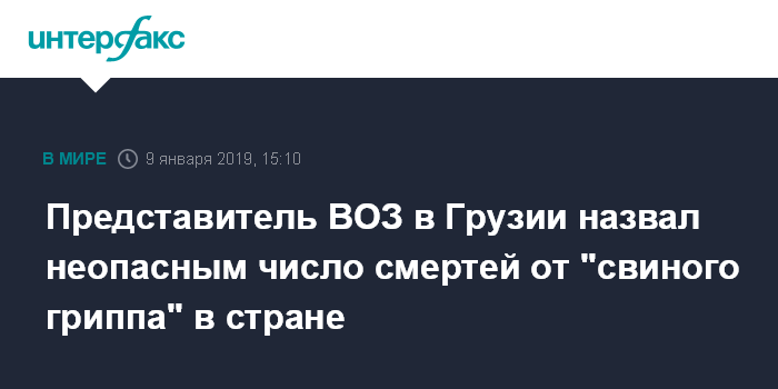 Ранее в среду в Национальном центре по контролю за заболеваниями Минздрава Грузии заявили журналистам, что причин для паники в связи с сообщениями о смертельных случаях заболевания нет, как и нет угрозы эпидемии. В центре привели в пример международную статистику, указав на то, что в 2018 году в США от того же штамма "свиного гриппа", который в настоящее время фиксируется в Грузии, погибли около 80 тысяч человек.