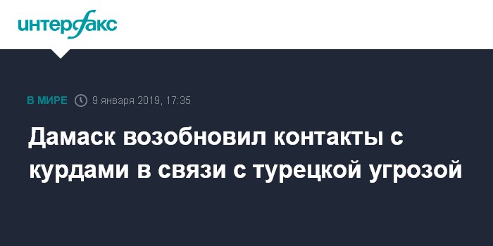 Москва. 9 января. INTERFAX.RU - Замглавы МИД Сирии Фейсал Мекдад заявил, что Дамаск на фоне угроз Турции в адрес сирийских курдов вновь начал диалог с ними.