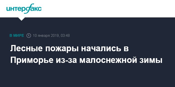 Москва. 10 января. INTERFAX.RU - Малоснежная зима стала причиной раннего начала лесных пожаров в Приморском крае, сообщила в четверг администрация региона.