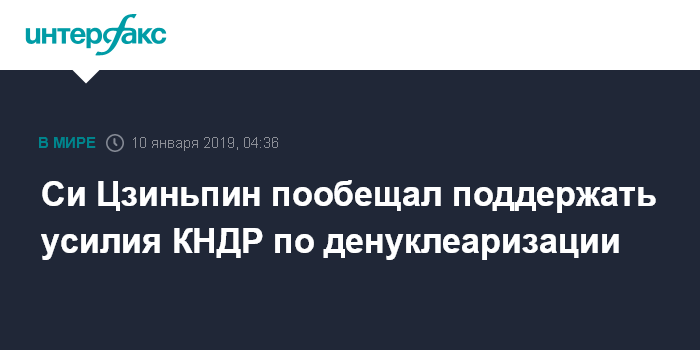 "Китай готов работать вместе с КНДР и соответствующими сторонами, чтобы играть позитивную и конструктивную роль в поддержании мира и стабильности на полуострове и реализации денуклеаризации полуострова и долгосрочной стабильности в регионе", - цитирует председателя КНР агентство "Синьхуа".