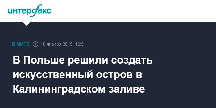 Москва. 10 января. INTERFAX.RU - Польша намерена создать искусственный остров в Вислинском (Калининградском) заливе, сообщает Польский культурный центр в Калининграде со ссылкой на СМИ страны.