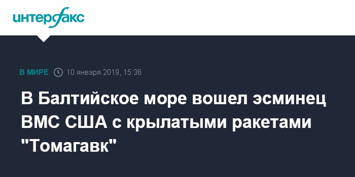 В Балтийское море вошел эсминец ВМС США с крылатыми ракетами "Томагавк"