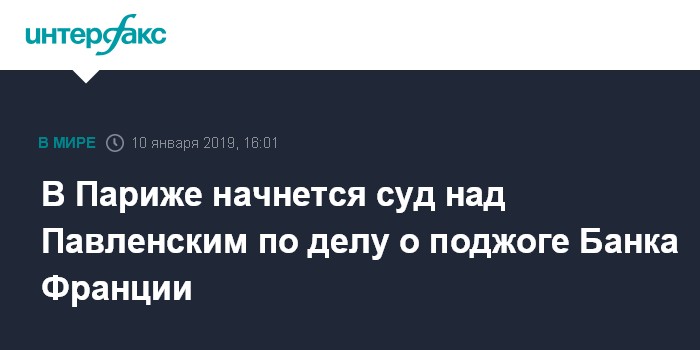 Москва. 10 января. INTERFAX.RU - В Париже в четверг начинается суд над российским художником-акционистом Петром Павленским, которого обвиняют в поджоге здания Банка Франции осенью 2017 года, сообщает France24.