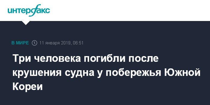 Три человека погибли после крушения судна у побережья Южной Кореи
