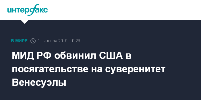 Москва. 11 января. INTERFAX.RU - Политика США по формированию альтернативных правительственных структур Венесуэлы является неприкрытым посягательством на суверенитет этой страны, считают в МИД РФ.