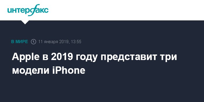 Москва. 11 января. INTERFAX.RU - Apple Inc. планирует представить три новые модели iPhone осенью текущего года, в том числе альтернативу бюджетной модели XR с жидкокристаллическим дисплеем, продажи которой не оправдали ожиданий компании, пишет The Wall Street Journal со ссылкой на осведомленные источники.
