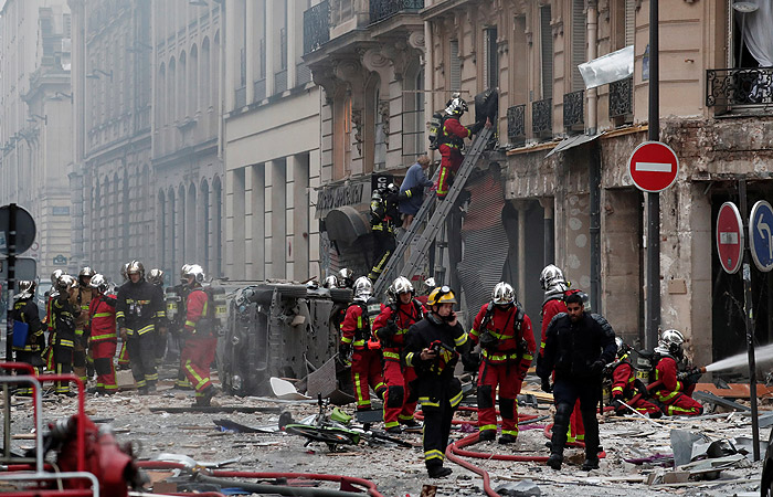"Пожарные Парижа работают над тушением огня в магазине на улице Тревиз в девятом округе, где разгорелся пожар, а затем - произошел мощный взрыв", - отмечается на странице полиции в твиттере.