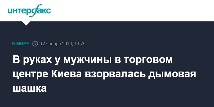 Москва. 12 января. INTERFAX.RU - В Киеве в торговом центре на улице Борщаговской произошел взрыв, в результате происшествия мужчина получил травму руки.