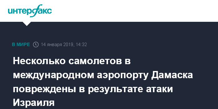 12 января ракетный удар израильских ВВС по пригороду Дамаска в районе международного аэропорта привел к некоторым разрушениям, однако жертв удалось избежать, сообщали сирийские СМИ.