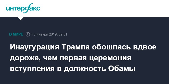 Инаугурация Трампа обошлась вдвое дороже, чем первая церемония вступления в должность Обамы