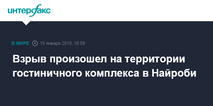 Москва. 15 января. INTERFAX.RU - Взрыв произошел на территории гостиничного комплекса в столице Кении, сообщает во вторник агентство Associated Press.