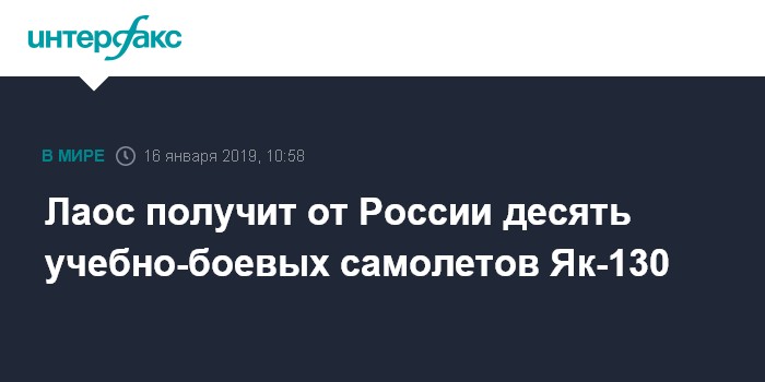 10 января информированный источник сообщил "Интерфаксу", что Россия поставила Лаосу несколько учебно-боевых Як-130.