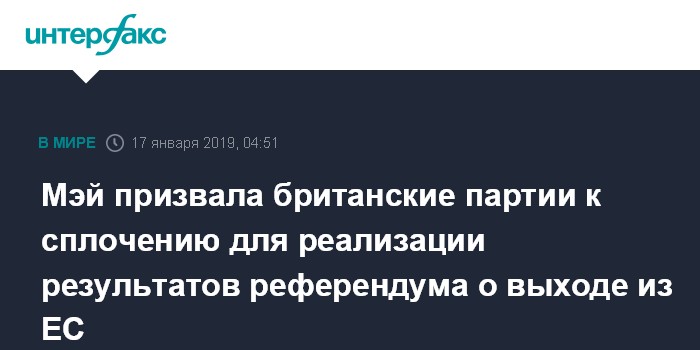 Москва. 17 января. INTERFAX.RU - Премьер-министр Великобритании Тереза Мэй выступила с призывом о сплочении всех партий для того, чтобы претворить в жизнь результаты референдума о выходе из ЕС.