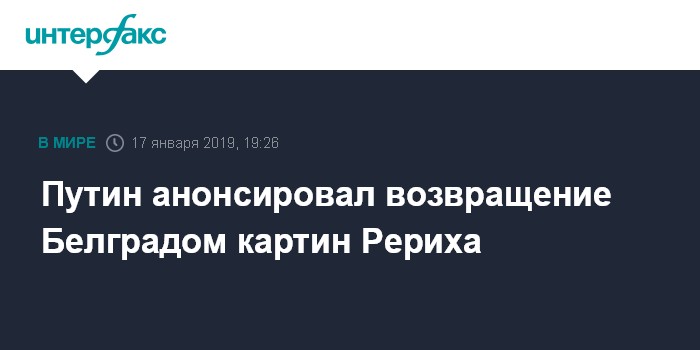 Москва. 17 января. INTERFAX.RU - Россия вернет Сербии 166-ю страницу Мирославова Евангелия, Белград вернет Москве картины Николая Рериха, сообщил президент РФ Владимир Путин.