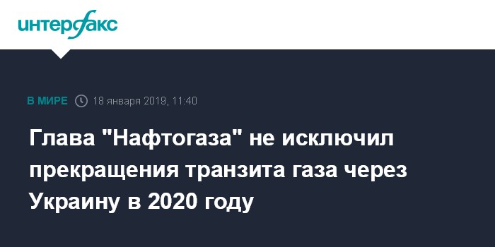 Москва. 18 января. INTERFAX.RU - Российская сторона при отсутствии новых договоров по поставкам газа может прекратить транзит через Украину в начале 2020 года, считает глава правления "Нафтогаза Украины" Андрей Коболев.