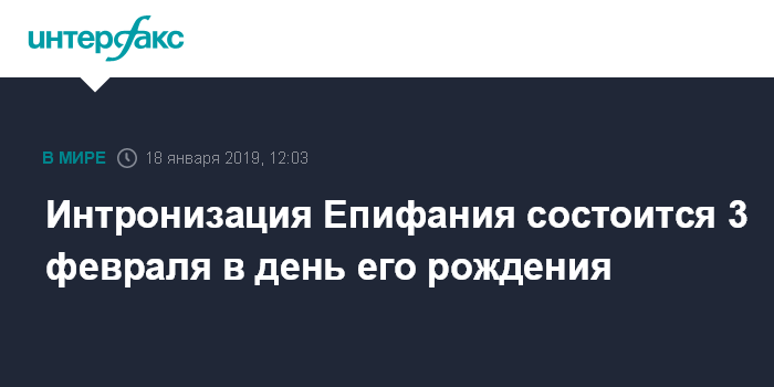 Интронизация Епифания состоится 3 февраля в день его рождения