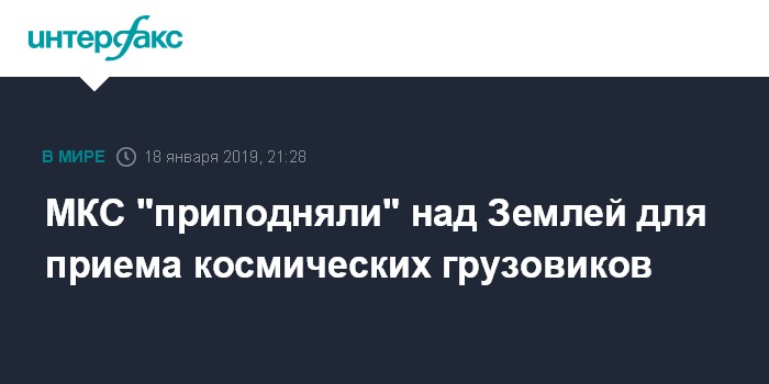 "В соответствии с программой полета Международной космической станции 18 января 2019 года проведена плановая коррекция орбиты МКС", - сказали в госкорпорации. Для проведения маневра в 21:01 мск была включена двигательная установка транспортного грузового корабля "Прогресс МС-10", пристыкованного к МКС.