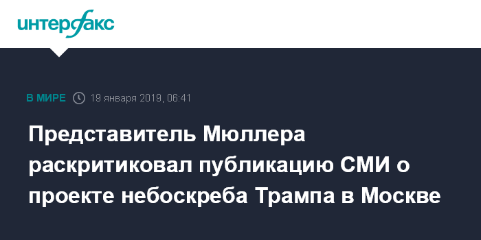 Представитель Мюллера раскритиковал публикацию СМИ о проекте небоскреба Трампа в Москве