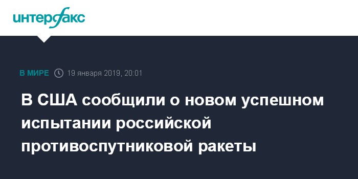 Москва. 19 января. INTERFAX.RU - Вооруженные силы России провели в декабре очередное успешное испытание новейшего противоспутникового комплекса, сообщил телеканал CNBС со ссылкой на источники в американской военной разведке.