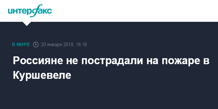 Москва. 20 января. INTERFAX.RU - Россияне не пострадали во время пожара на горнолыжном курорте Куршевель, сообщил первый секретарь посольства РФ во Франции Александр Гостинский в эфире телеканала "Россия-24".