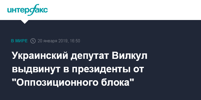 В декабре 2018 года на VIII съезде партии "Оппозиционный блок" была объявлена готовность политсилы участвовать в президентских и парламентских выборах и намерения выдвинуть Вилкула кандидатом в президенты Украины на выборах, которые назначены на март 2019 года.