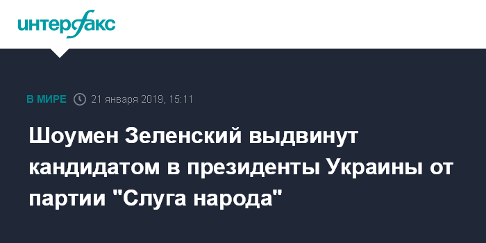 1 января 2019 года Зеленский заявил, что выдвигает свою кандидатуру на выборах президента Украины, которые пройдут 31 марта.