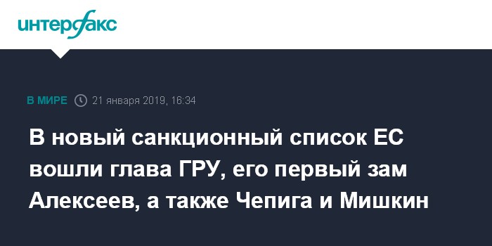 В новый санкционный список ЕС вошли глава ГРУ, его первый зам Алексеев, а также Чепига и Мишкин