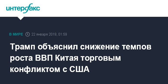 Москва. 22 января. INTERFAX.RU - Президент США Дональд Трамп, ознакомившийся с данными Государственного статистического управления (ГСУ) КНР об уровне роста экономики Китая, призвал Пекин договориться по-настоящему.