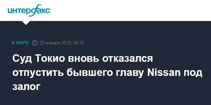 Москва. 22 января. INTERFAX.RU - Суд Токио вновь отказал экс-главе Nissan Motor Карлосу Гону в освобождении под залог, пишет MarketWatch.