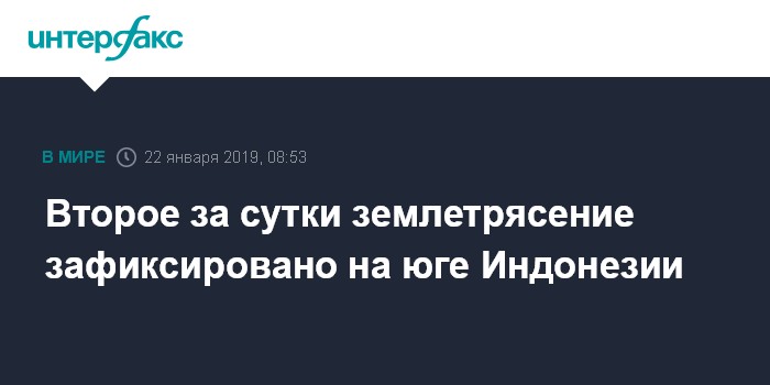 Второе за сутки землетрясение зафиксировано на юге Индонезии