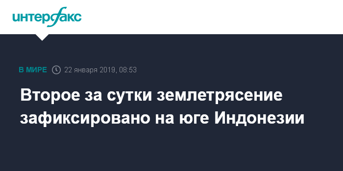 Москва. 22 января. INTERFAX.RU - Повторный подземный толчок зафиксирован близ южного берега индонезийского острова Сумба, магнитуда составила 6,6.