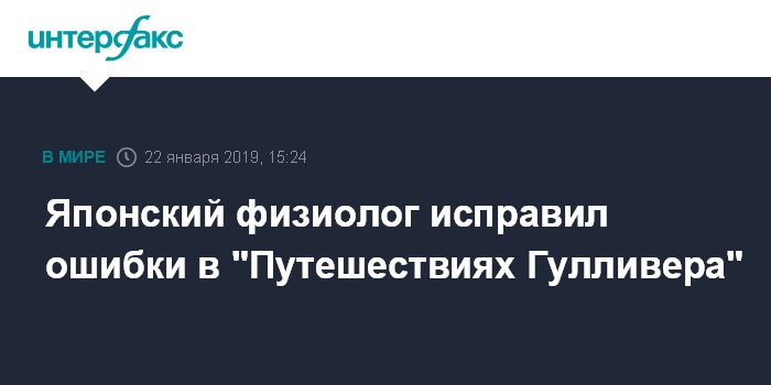 Москва. 22 января. INTERFAX.RU - Японский физиолог исправил ошибки в книге "Путешествия Гулливера" почти три века спустя после ее публикации, пишет сайт N+1 cсо ссылкой на The Journal of Physiological Sciences.