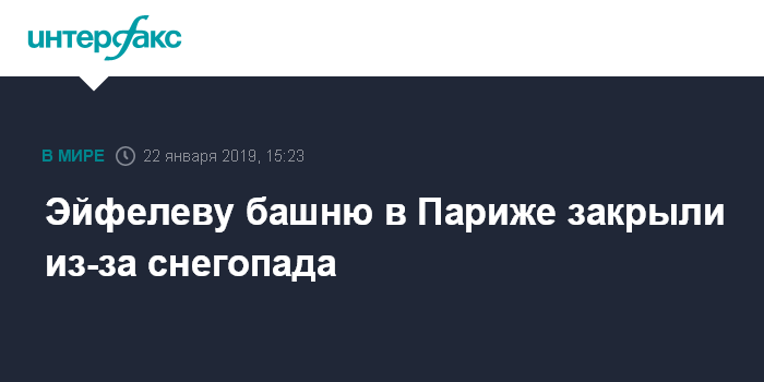 Москва. 22 января. INTERFAX.RU - Одна из главных достопримечательностей французской столицы - Эйфелева башня - во вторник приостановила работу из-за снегопада.