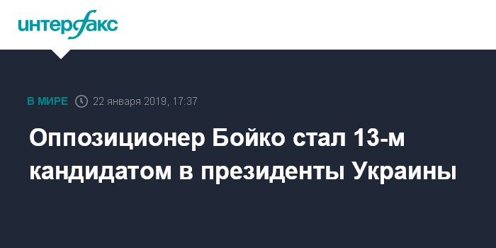Москва. 22 января. INTERFAX.RU - Один из основателей "Оппозиционной платформы - За жизнь", депутат Рады Юрий Бойко зарегистрирован кандидатом в президенты Украины.