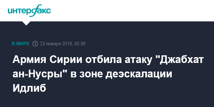Москва. 23 января. INTERFAX.RU - Сирийская армия отбила атаку боевиков террористической группировки Джабхат ан-Нусра (запрещена в РФ) в зоне деэскалации Идлиб, сообщили российские военные.