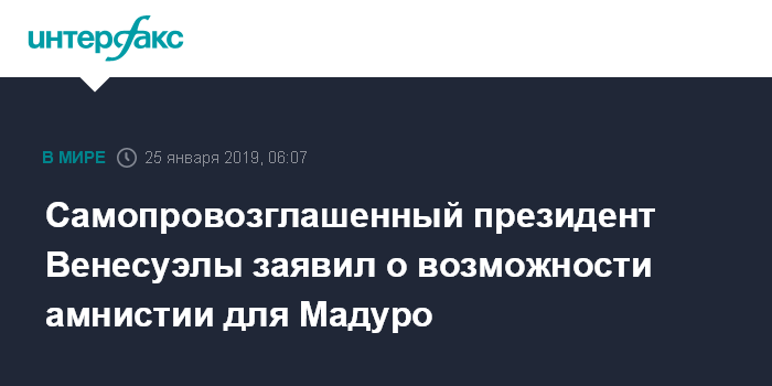 Самопровозглашенный президент Венесуэлы заявил о возможности амнистии для Мадуро