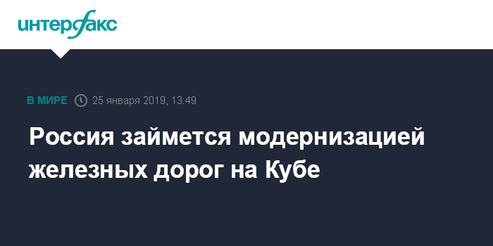 Москва. 25 января. INTERFAX.RU - РФ поможет Кубе восстановить железные дороги и уйти от нефтяной зависимости на фоне ситуации в Венесуэле, сообщил вице-премьер Юрий Борисов.