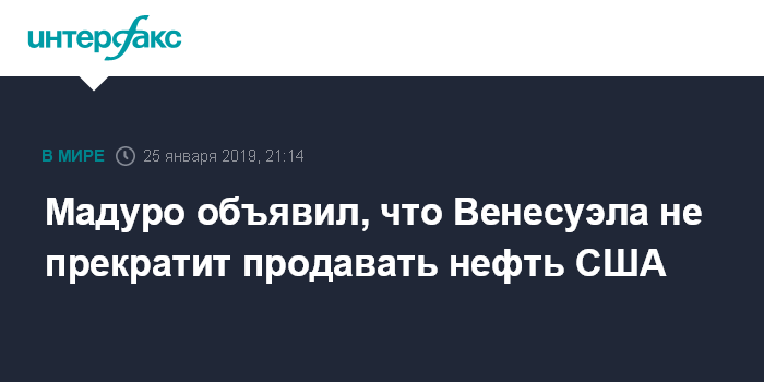 "Я разорвал отношения с правительством Дональда Трампа, но не с народом США. США - это больше, чем правительство Трампа. Мы продолжим продавать нефть, которую там просят у нас", - заявил Мадуро в выступлении, которое транслируется в эфире Национального радио Венесуэлы.