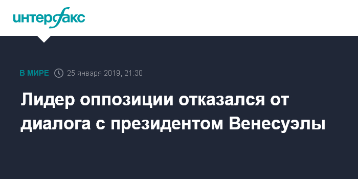 Москва. 25 января. INTERFAX.RU - Провозгласивший себя президентом Венесуэлы оппозиционер Хуан Гуаидо отказал законному президенту страны Николасу Мадуро в диалоге.