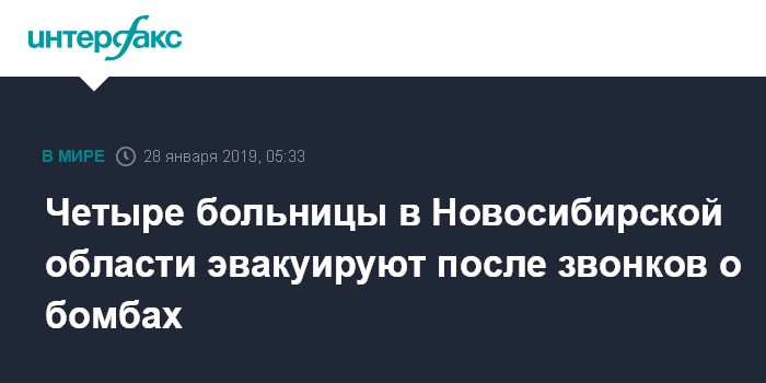 Москва. 28 января. INTERFAX.RU - Четыре учреждения здравоохранения Новосибирской области получили сигналы о минировании, сообщил министр здравоохранения региона Константин Хальзов на оперативном совещании в облправительстве в понедельник.